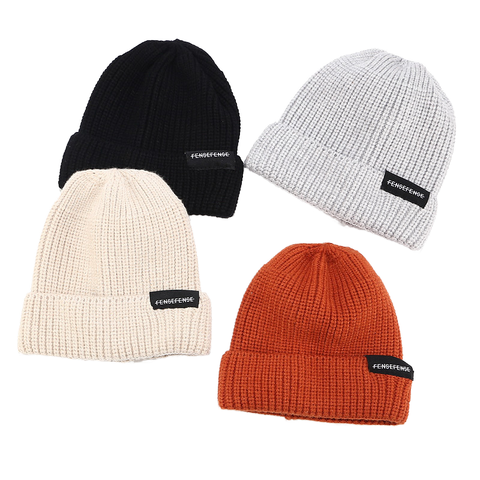 قبعة شتوية دافئة للجنسين بلون واحد قبعة جمجمة للرجال والنساء بشعار تطريز مخصص ملابس يومية عالية الجودة